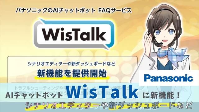 最新ニュース パナソニック、AIチャットボット「WisTalk」にシナリオエディターや新ダッシュボードなどの新機能が掲載 2023年8月8日 NamiShibuya https://tenpodx.com/wp-content/uploads/2022/12/TD.webp 店舗運営に役立つ情報メディアTENPODX